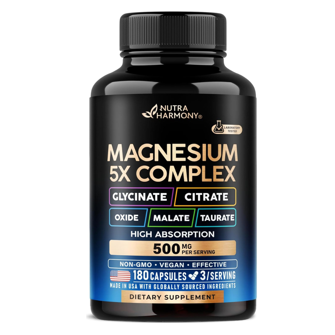 Complejo de magnesio 5 en 1: la mezcla de 2250 mg de sales de magnesio entrega 500 mg de magnesio elemental, que es 119% DV, para reponer las deficiencias y apoyar los niveles de magnesio. Di adiós a las deficiencias de magnesio y da la bienvenida a los niveles óptimos de magnesio que sobrecargarán tu cuerpo y elevarán tu rendimiento.