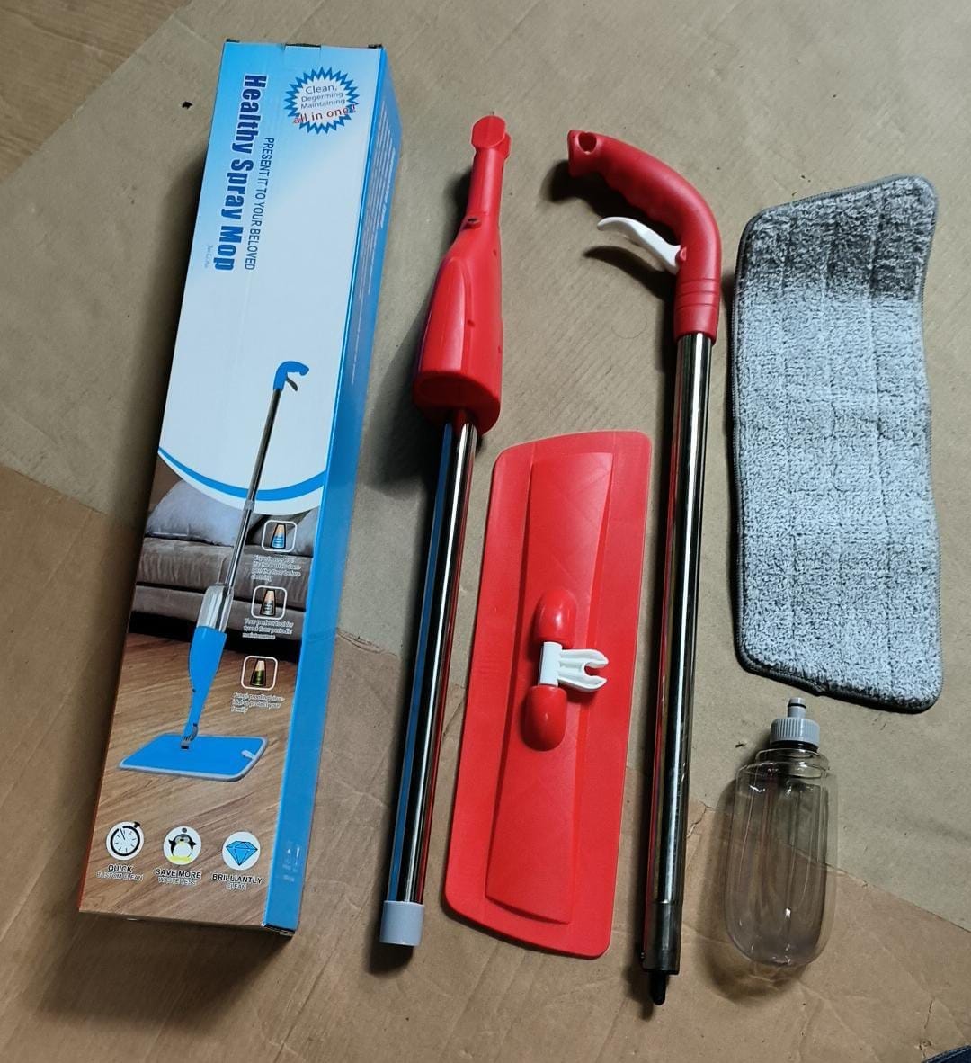Mopa pulverizadora saludable (Healthy Spray Mop). Es una herramienta de limpieza de pisos que simplifica la rutina de limpieza diaria al combinar las funciones de barrer y trapear sin la necesidad de baldes aparatosos.