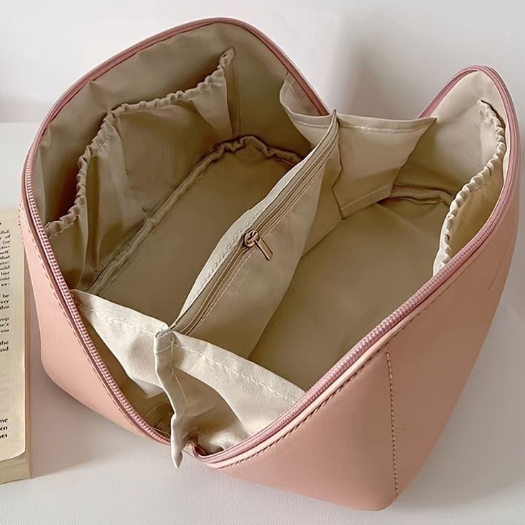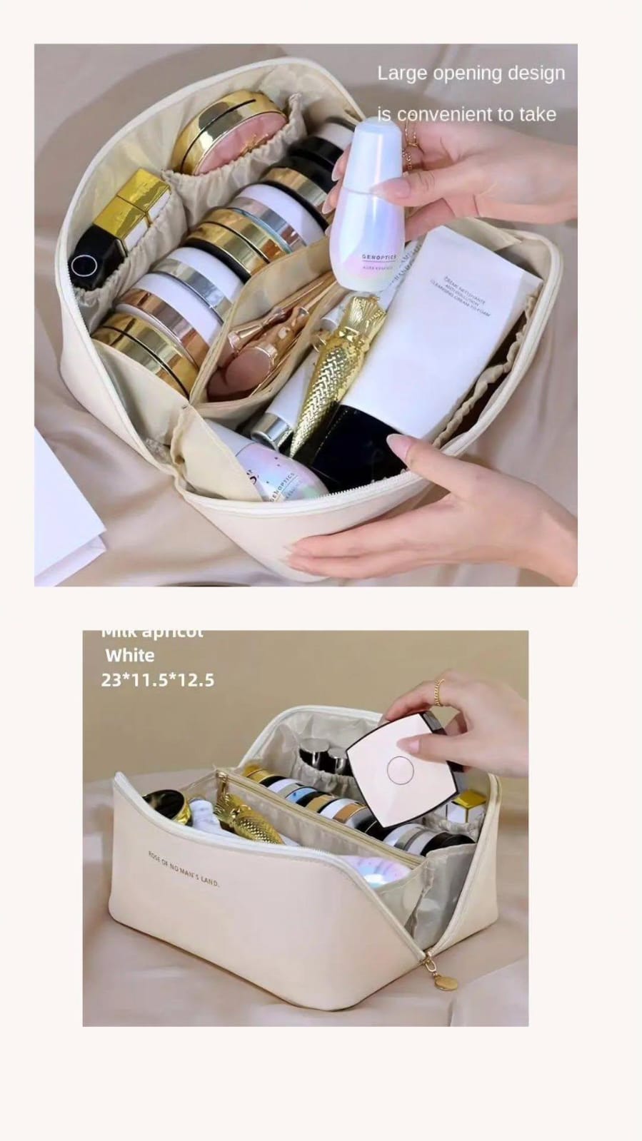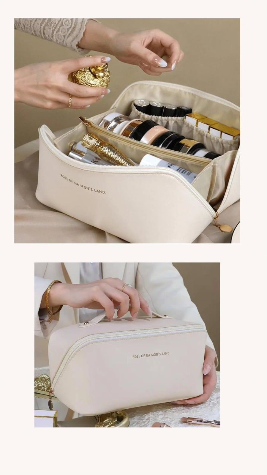 Elegante, espaciosa y súper práctica. Esta necessaire organizadora es perfecta para llevar maquillaje, skincare, perfumes, accesorios o artículos de viaje. Su diseño minimalista y sofisticado la convierte en un accesorio ideal para uso diario o para regalar.