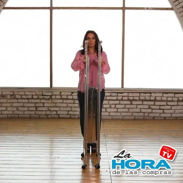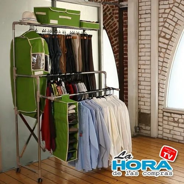 Desplegar la estructura sobre una superficie plana. Ensamblar los tubos y conectores siguiendo el instructivo incluido. Ajustar la altura y el ancho según necesidad. Colgar ropa, cajas o accesorios en los niveles disponibles. Para guardar, desmontar y almacenar en su caja original. No requiere herramientas.