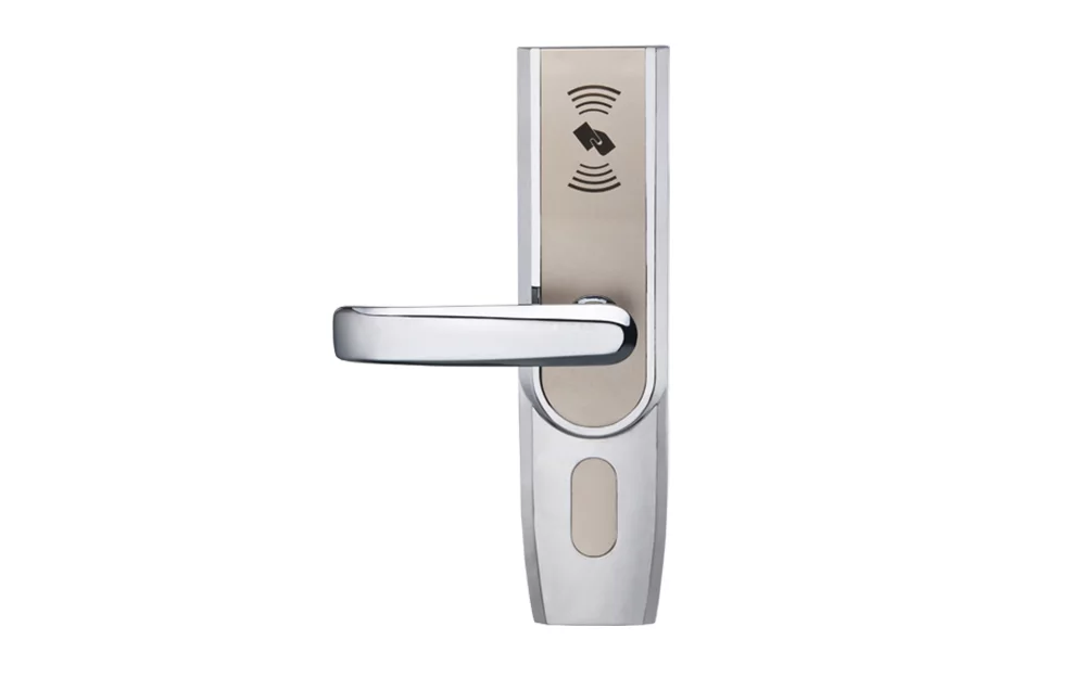 La LH5000 es una cerradura electrónica de alta seguridad diseñada para aplicaciones hoteleras. Utiliza tecnología RFID avanzada y es compatible con tarjetas MIFARE-1 de 13.56 MHz. Su diseño cumple con el estándar americano, incorporando 5 pestillos para un cierre seguro.