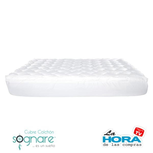 Descripción del producto: El Cubre Colchón Sognare está diseñado para mejorar la calidad del descanso. Fabricado con tecnología Microfussion y relleno de microfibras de gel, ofrece tres zonas de confort que se adaptan a hombros, cadera y piernas. Su funda Softy Touch es hipoalergénica, lavable y suave al tacto, ideal para prolongar la vida útil del colchón y brindar una sensación de frescura y alivio muscular. Disponible en tamaños Individual, Matrimonial, Queen y King.