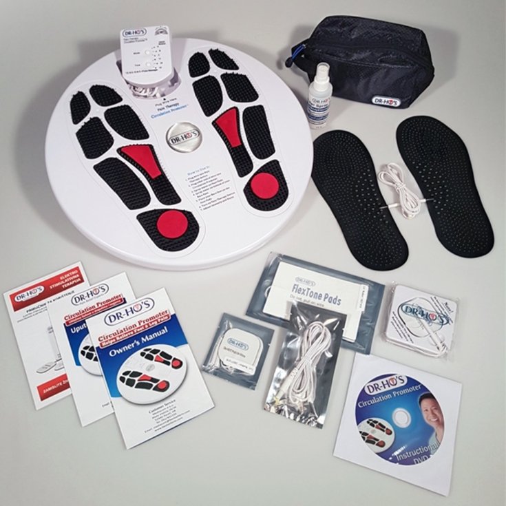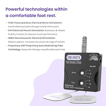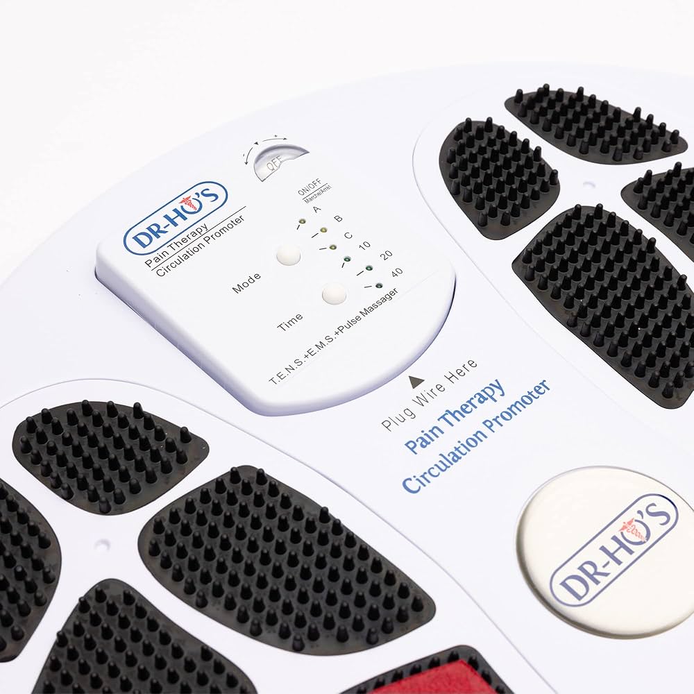Descripción del producto: El Promotor de Circulación Dr Ho es un dispositivo terapéutico que combina tecnología TENS y EMS para estimular los músculos de pies y piernas, aliviar el dolor y mejorar la circulación sanguínea. Su diseño incluye electrodos integrados en la base, control remoto, pantalla digital y modos ajustables de intensidad. Ideal para personas con dolor crónico, fatiga muscular, hinchazón o mala circulación. Puede usarse sentado cómodamente en casa.