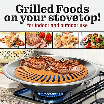 ¡Asá tus comidas favoritas de forma saludable en tu estufa, sin humo ni desorden! El Gotham Steel Stovetop Grill te permite cocinar a la parrilla en interiores (o exteriores) usando tu estufa eléctrica, de gas o propano. Su secreto está en el diseño: cuenta con una bandeja de goteo de acero inoxidable que se llena de agua para atrapar la grasa y el jugo, eliminando por completo el humo y las salpicaduras durante la cocción. Simplemente calentá, ¡y listo! Su superficie de alta calidad es antiadherente, lo que la hace ideal para cocinar sin grasas añadidas y garantiza una limpieza extremadamente fácil. Además, es apta para horno hasta 500 °F. ¡Comprá hoy Gotham Steel y disfrutá del sabor de la parrilla todo el año!
