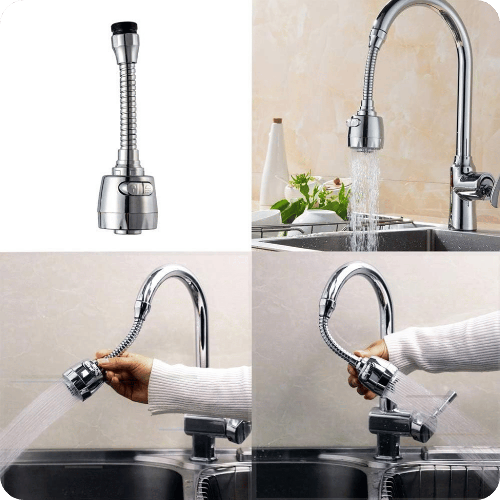 Diseño giratorio de 360°: el grifo giratorio de 360° garantiza la máxima libertad de movimiento en el área del fregadero, y la extensión del grifo es muy flexible y se puede girar en cualquier ángulo mientras permanece fija, lo que proporciona una gran comodidad para limpiar y limpiar el cocina. Los puntos ciegos del fregadero se limpian fácilmente sin salpicar.