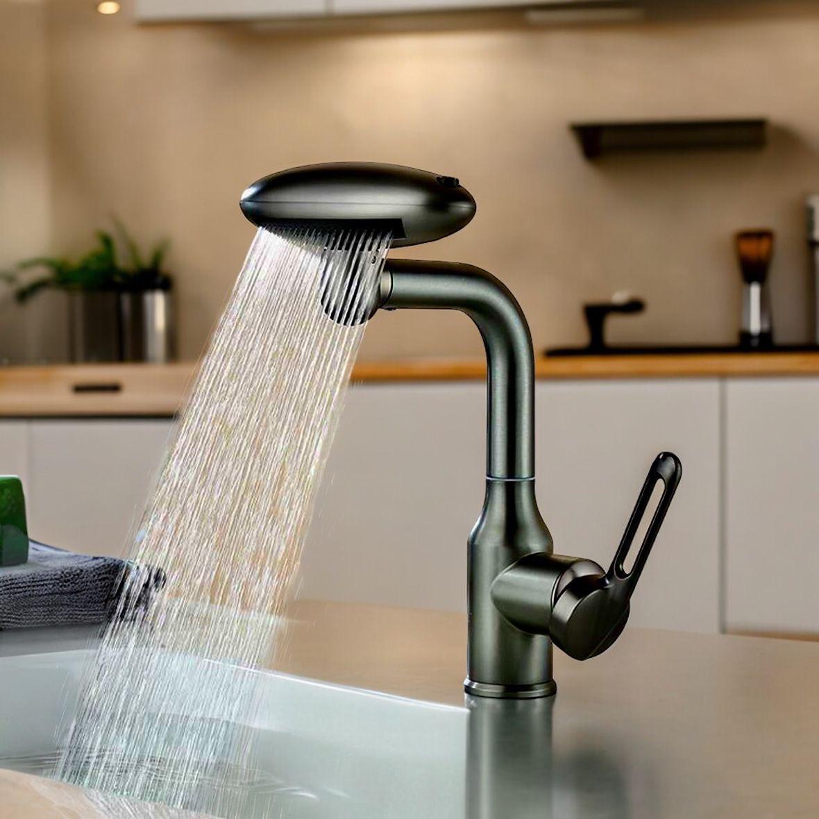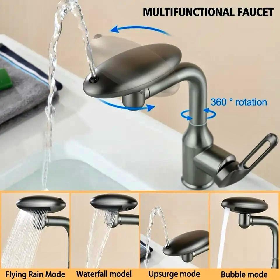 Este es un grifo multifuncional para lavabo, con varias características destacadas: