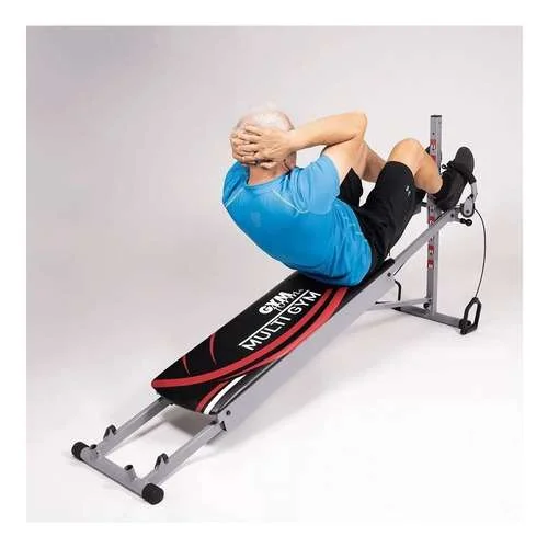 descripción del producto: Gymform Multigym es una estación de entrenamiento plegable que permite realizar más de 100 ejercicios para tonificar piernas, brazos, abdomen, glúteos, espalda y pecho. Su diseño compacto incluye banco deslizante, poleas, bandas elásticas, soporte lumbar y sistema de resistencia ajustable. Ideal para rutinas de cardio, fuerza, pilates y estiramiento desde casa. Apto para todos los niveles de condición física.