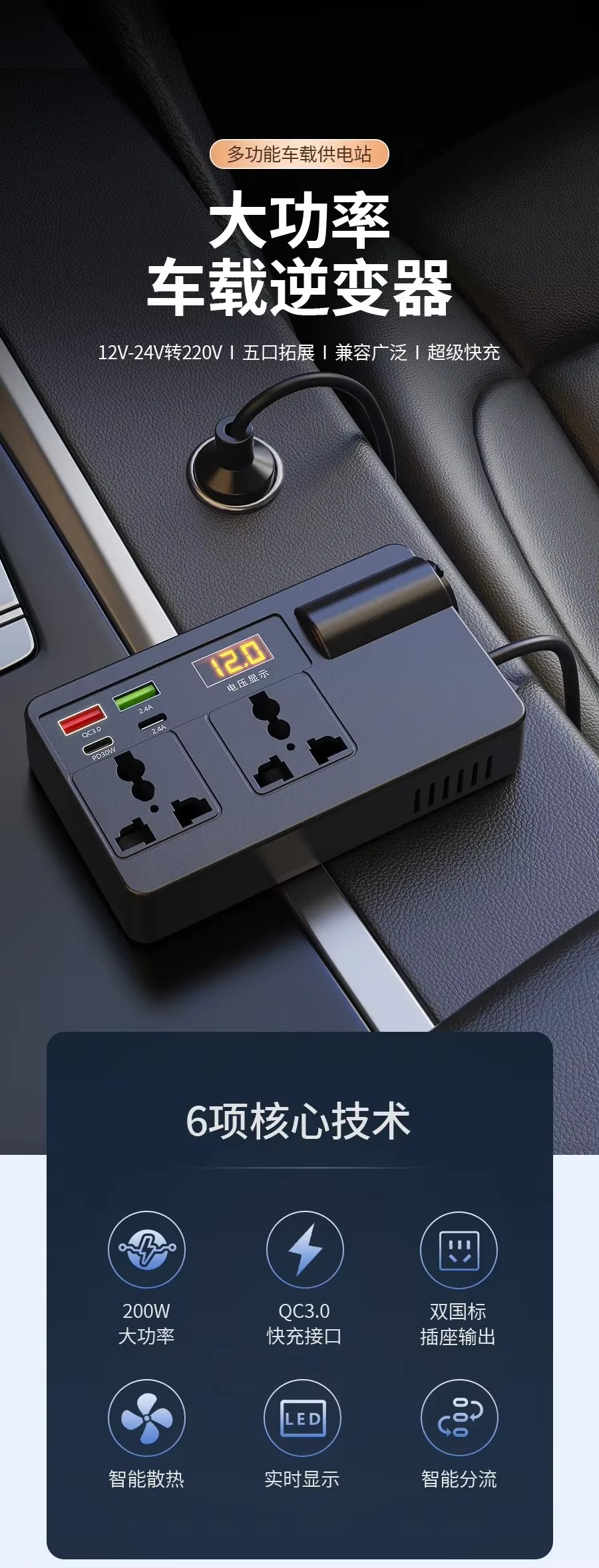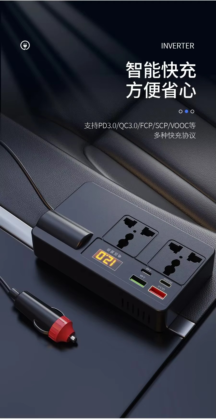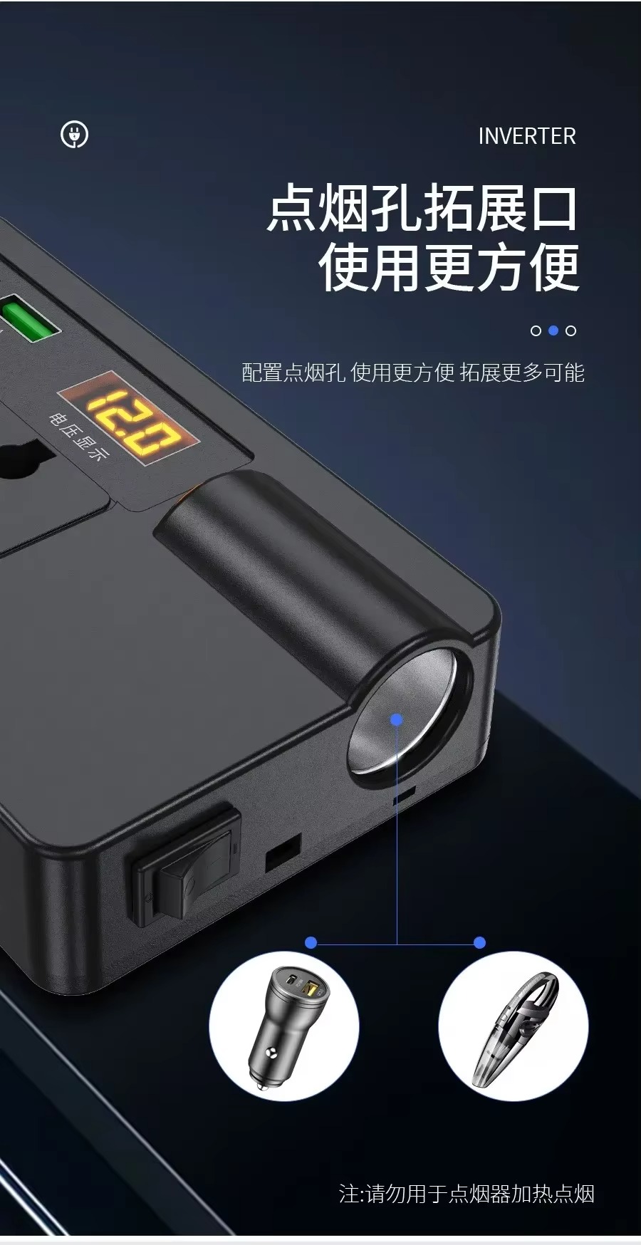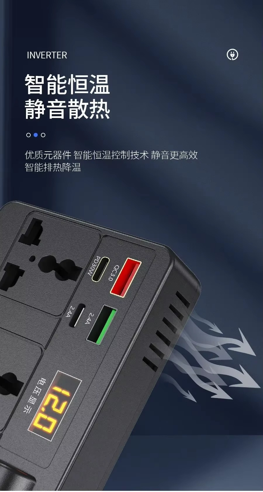 Convierte tu vehículo en una oficina o centro de entretenimiento móvil. Este inversor de alto rendimiento transforma la energía de tu batería en corriente alterna (AC) y carga ultrarrápida para todos tus dispositivos electrónicos.