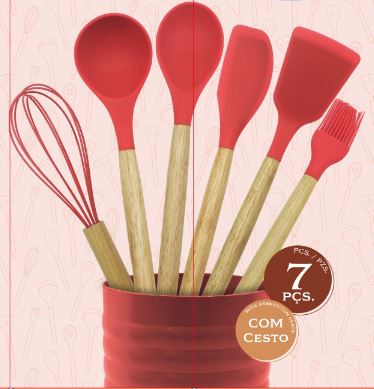 KIT JUEGO DE COCINA DE 7 PIEZAS DE SILICONA CON MANGO DE MADERA (PRODUCTO PREMIUM)