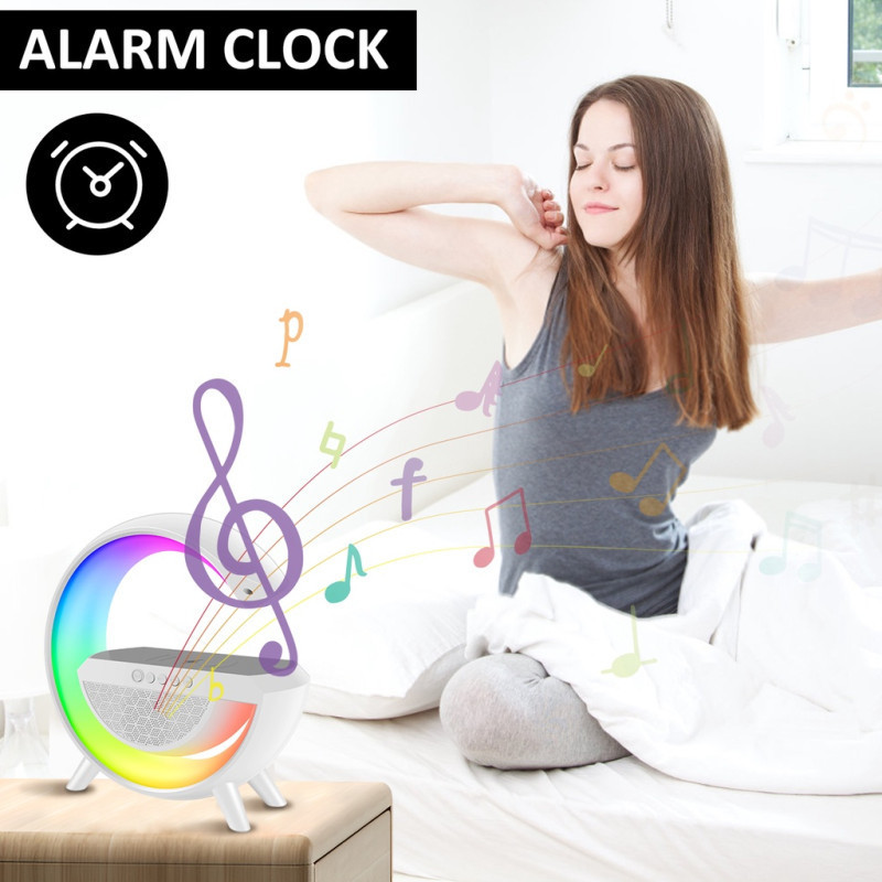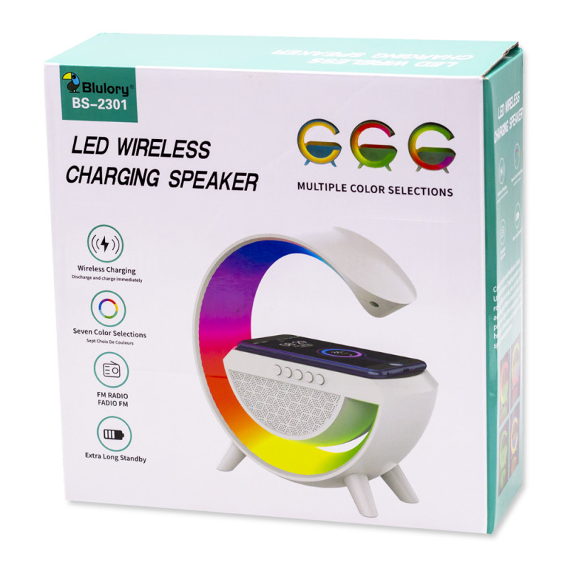 🤍 Lámpara de Mesa G LED Smart Light Sound Blulory BS-2301 – Multifuncional con Altavoz Bluetooth / RGB / Cargador Inalámbrico (Blanca)