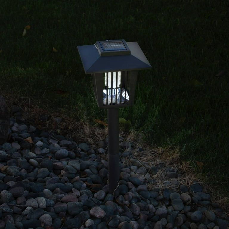 Disfrutá de noches tranquilas y sin mosquitos con la Lámpara Solar Mata Mosquitos Negra 2v Exterior.