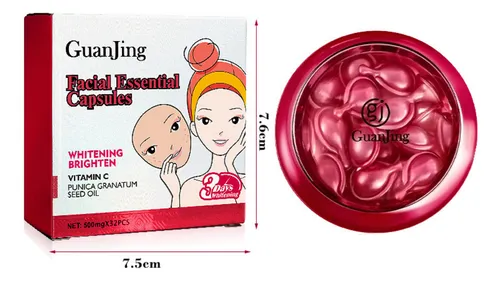 tratamiento para el cuidado de la piel, crema o sérum, que contiene cápsulas o perlas rosadas, y está etiquetado como "Guanjing". Identificación del producto: Es un producto de cuidado facial, probablemente una crema o un sérum, con cápsulas de vitamina C o ingredientes similares para mejorar la piel. Beneficios potenciales: Ayuda a reducir líneas finas, mejorar la elasticidad de la piel, hidratar, y unificar el tono de la piel. Ingredientes clave: Puede contener ingredientes como vitamina C, ácido hialurónico, colágeno, vitaminas y minerales, que contribuyen a una piel más radiante y saludable. Uso: Se aplica en el rostro, y dependiendo del producto específico, puede ser de uso diario o parte de un tratamiento más intensivo, como la mesoterapia |