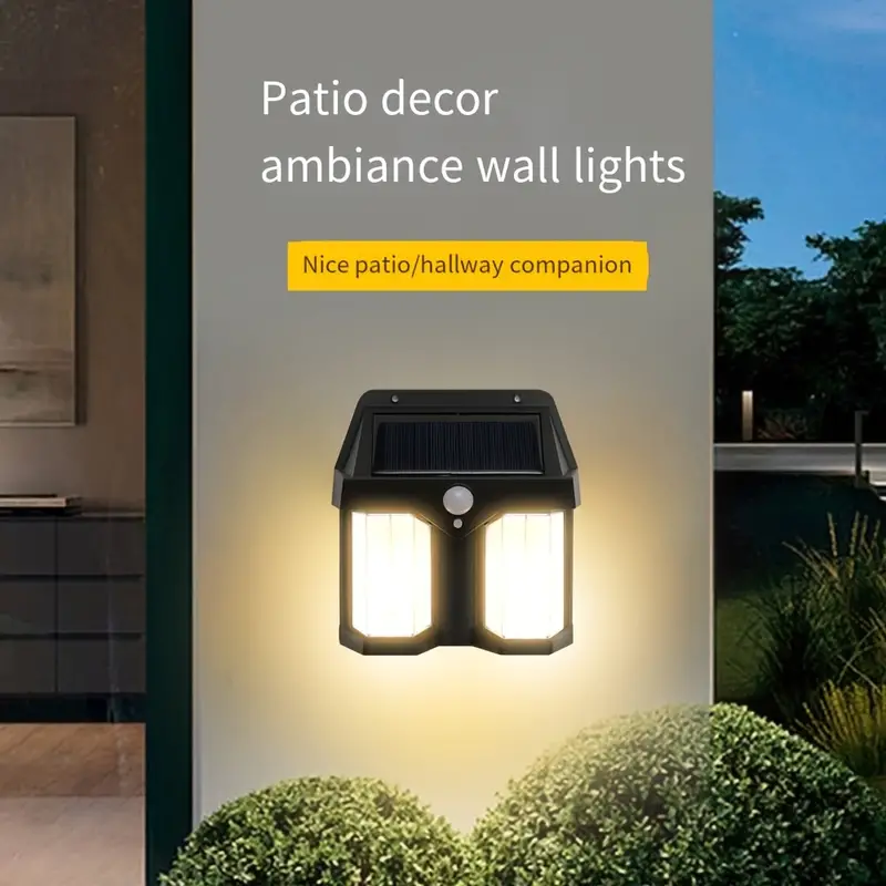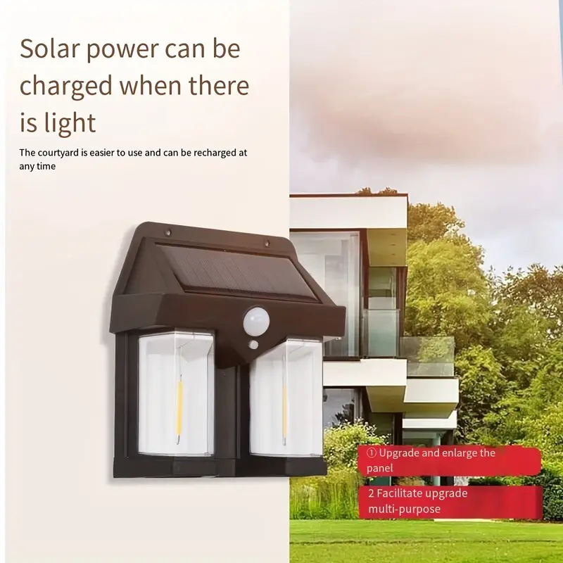 📷 Vista lateral de la luz instalada en pared (día y noche)