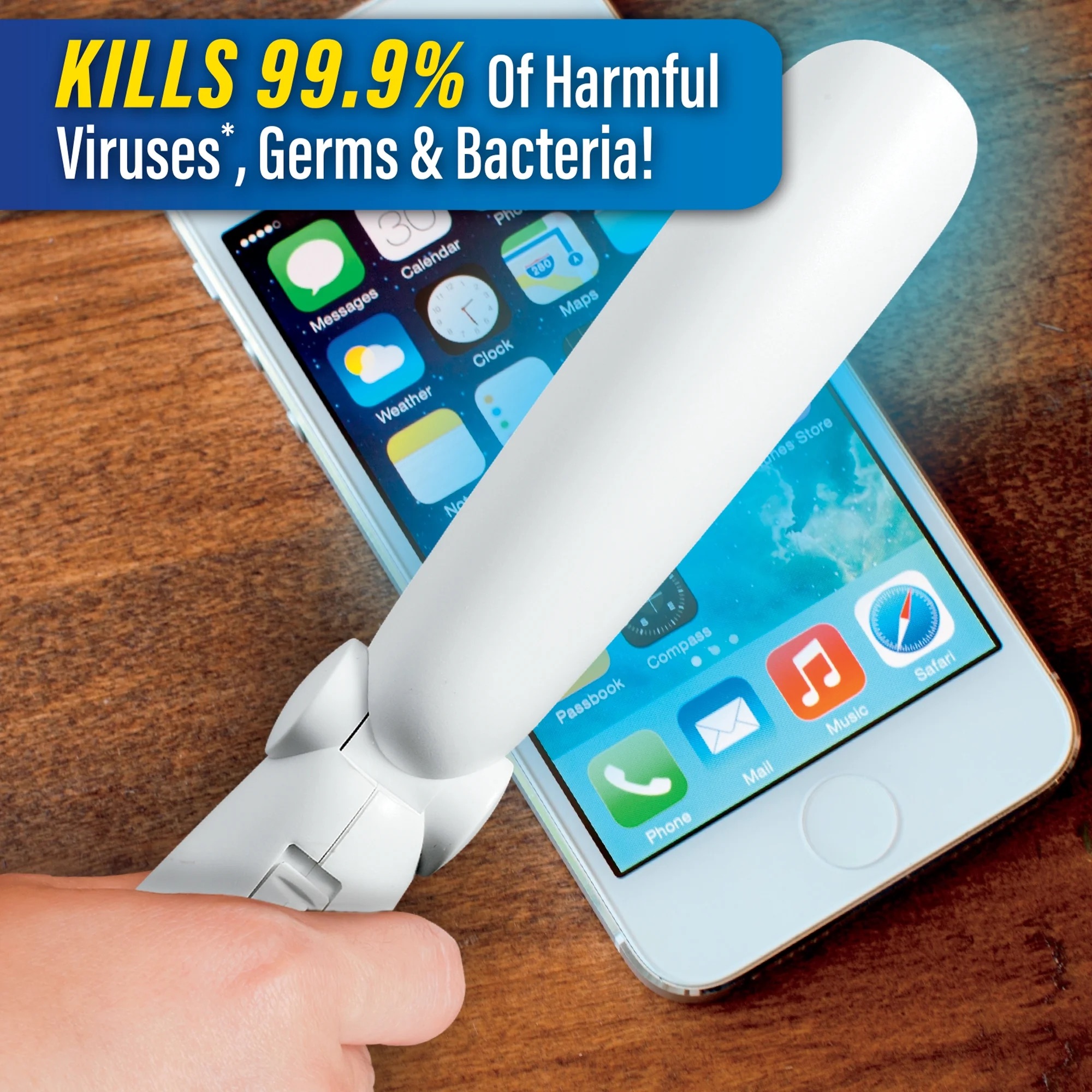 Solo tenés que encenderla, mantenerla sobre la superficie durante 10 segundos, ¡y listo! Mata hasta el 99,9% de patógenos, incluyendo gripe, E. coli, estafilococos, moho, alérgenos y ácaros del polvo.