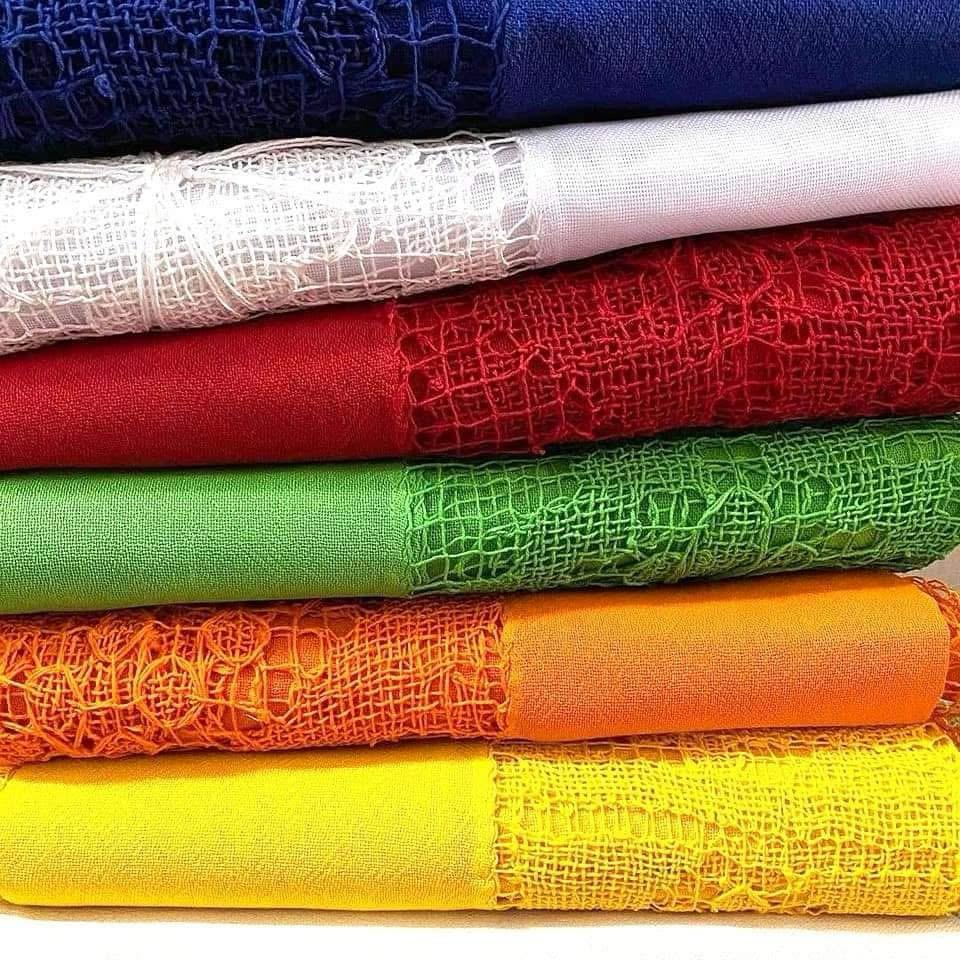 Mantel de lienzo bordado con encaje ju. Especial para vestir elegante la mesa. Colores variados.