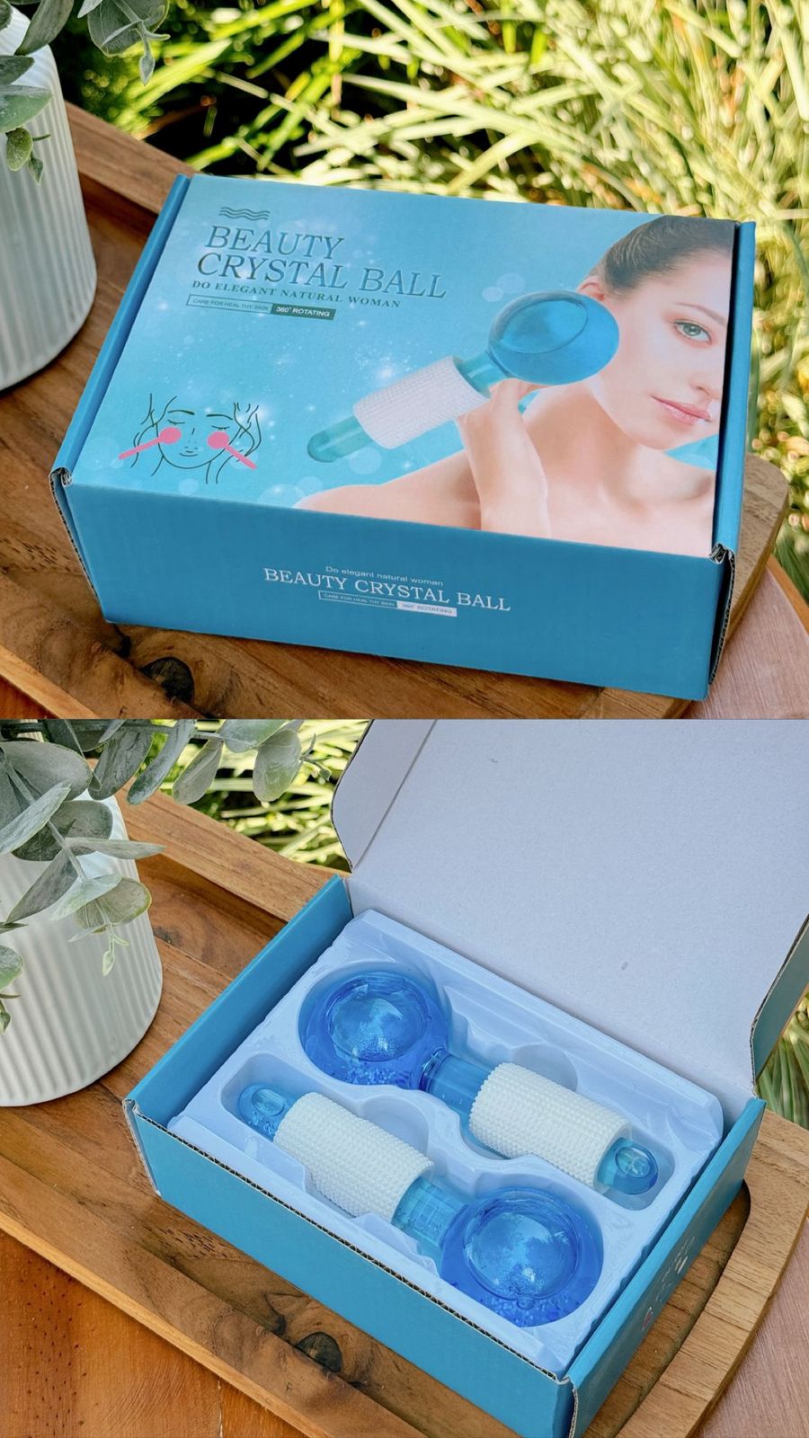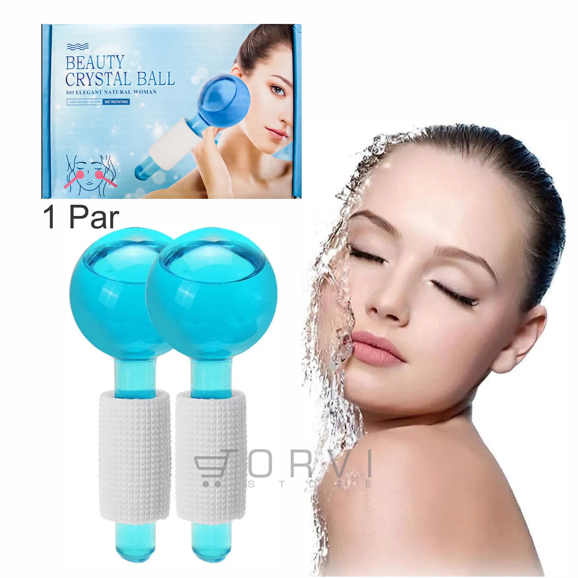 "Beauty Crystal Ball", también conocida como masajeador facial de cristal o esferas de hielo faciales. Función principal: Se utiliza para masajes faciales en frío, ayudando a desinflamar, refrescar y tonificar la piel. Beneficios: Estimula la circulación sanguínea, reduce arrugas, líneas de expresión y ojeras, y mejora la absorción de productos para el cuidado de la piel. Material: Generalmente están hechas de vidrio de borosilicato y pueden contener esencias o líquidos para mantener el frío. Uso: Se pueden aplicar en el rostro para un efecto lifting, aliviar la tensión y fatiga de la piel, y reducir la inflamación.