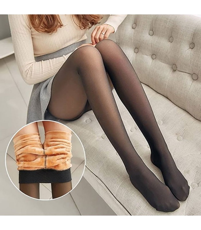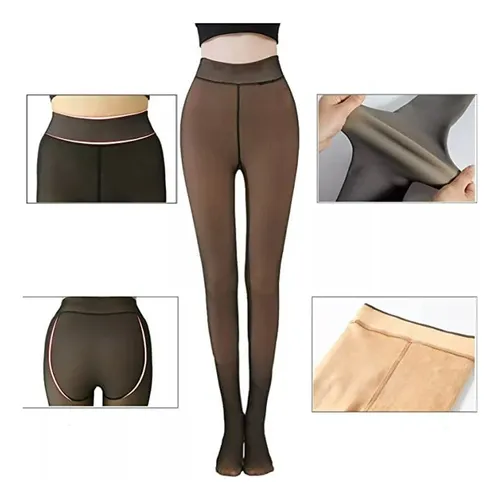 Su apariencia fina y ligera simula una media delicada, pero en realidad cuenta con un forro interior afelpado y térmico, ideal para mantenerte caliente sin perder el estilo.