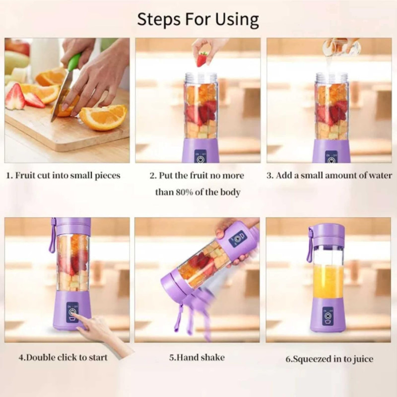 1️⃣ Portátil y recargable: Batería de 2000mAh que permite preparar varios jugos con una sola carga 🔌.