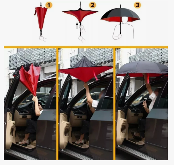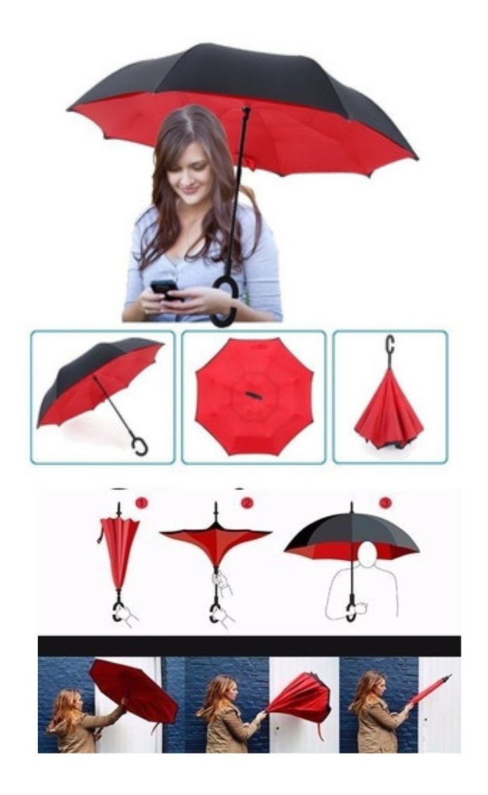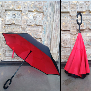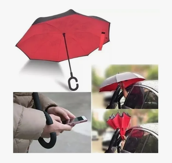 Con nuestro paraguas invertido estarás protegido de la lluvia de manera práctica y elegante.