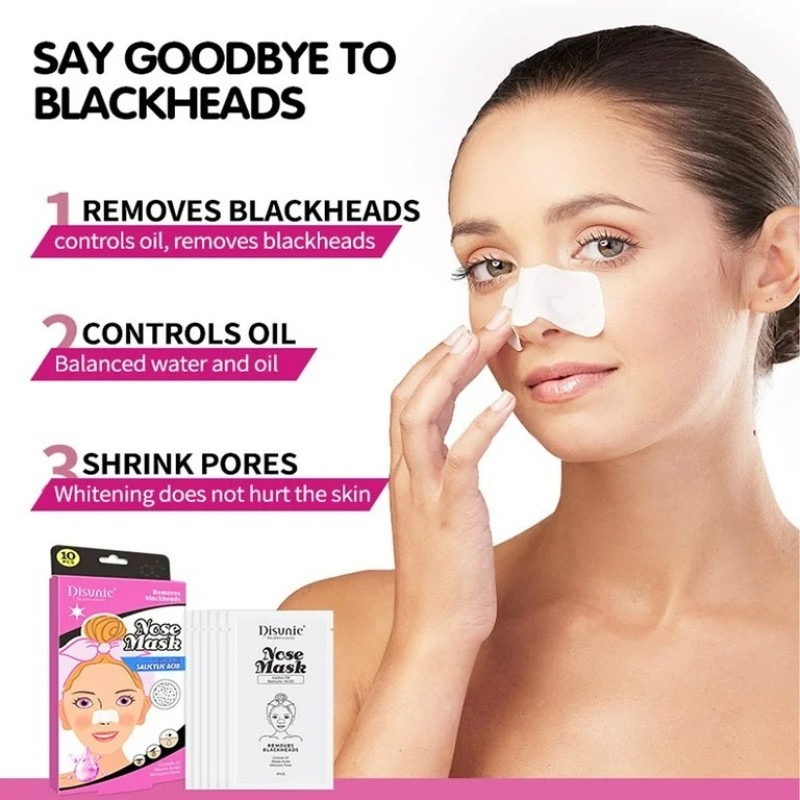DISUNIE NOSE MASK CON ACIDO SALICÍLICO 10pcs Mascarilla para puntos negros de la nariz Elimina puntos negros, controla la grasa, resiste el acné y minimiza los poros. USO: Después de la limpieza, humedezca su nariz, coloque la superficie lisa de este producto sobre la nariz. Colóquelo sobre la nariz y déjelo actuar durante 15 minutos hasta que se seque y endurezca. Retírelo con cuidado y enjuáguelo. Aplique tónico. |