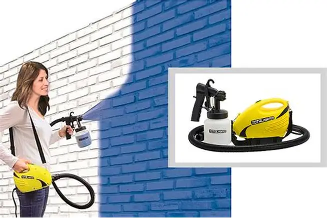 TOTAL PAINTER es una pistola de pintura eléctrica con compresor integrado de 900W, diseñada para pintar paredes, techos, muebles y superficies metálicas de forma rápida, limpia y sin esfuerzo. Su sistema de pulverización por aire permite una cobertura uniforme sin goteos ni brochazos. Ideal para interiores y exteriores, es compatible con pinturas base agua o base solvente de baja viscosidad. Incluye boquillas intercambiables y correa para colgar al hombro.