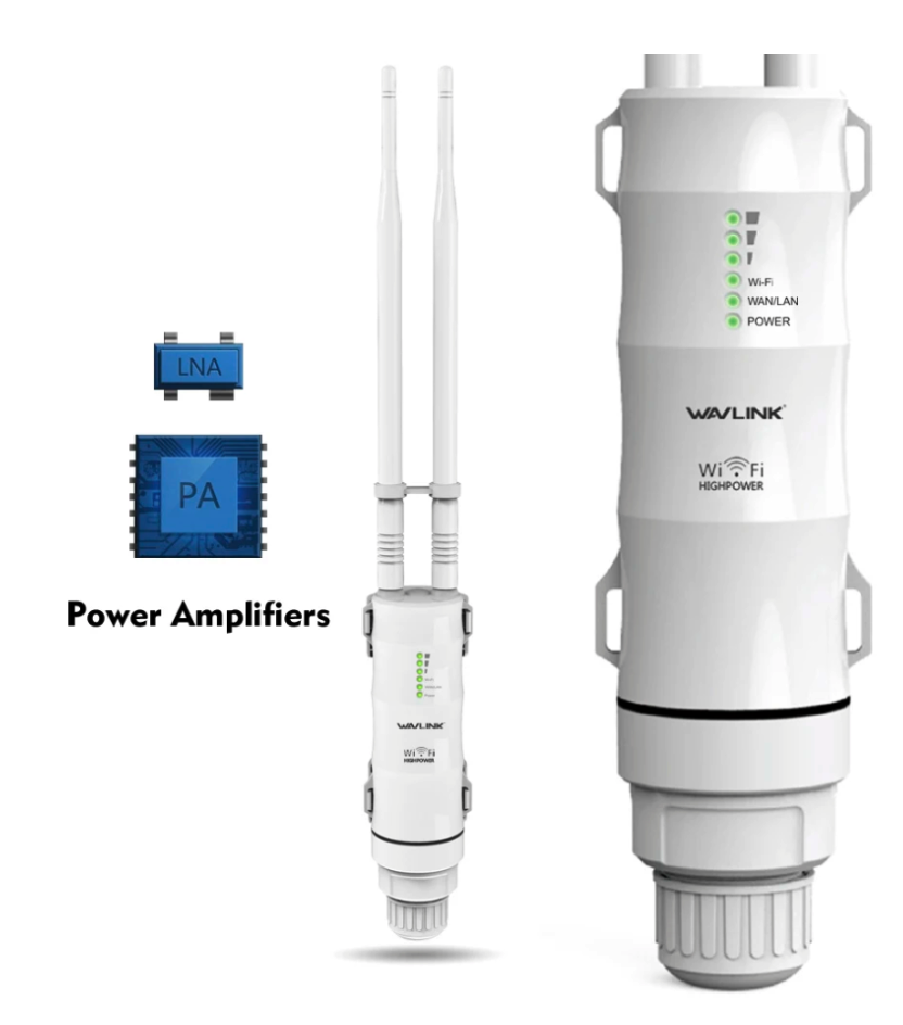 - Proporciona alto rendimiento en enlaces de largo alcance, con antenas de 7dBi