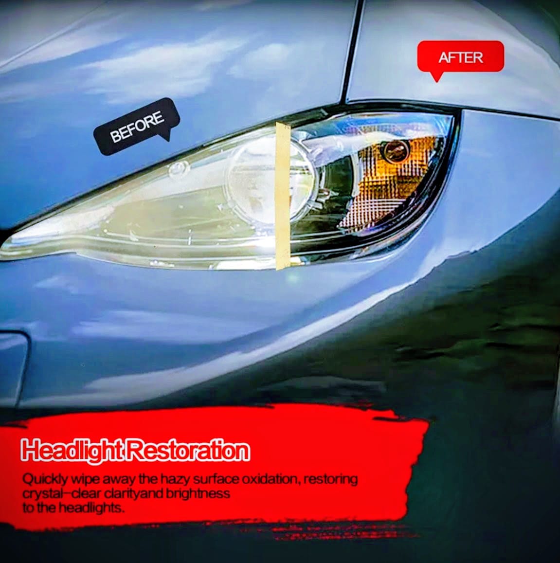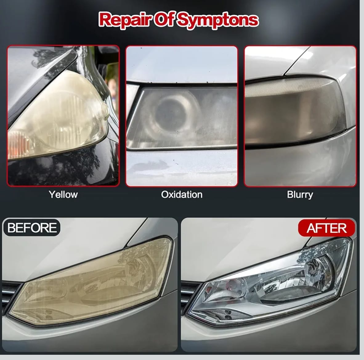 La fórmula avanzada del restaurador de faros elimina el aspecto amarillento y brumoso desvanecido, reduciendo el plástico prístino debajo, asegurando la visión más brillante y clara. CONSEJOS: No se aplican luces muy deterioradas.