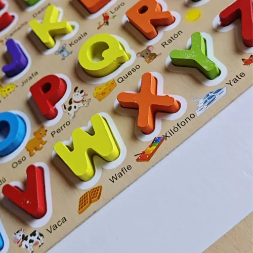 Dominio del alfabeto: Este tablero de rompecabezas del alfabeto de madera es un excelente juguete para mayores de 3 años, que ayuda a los niños a dominar el alfabeto de una manera divertida e interactiva.