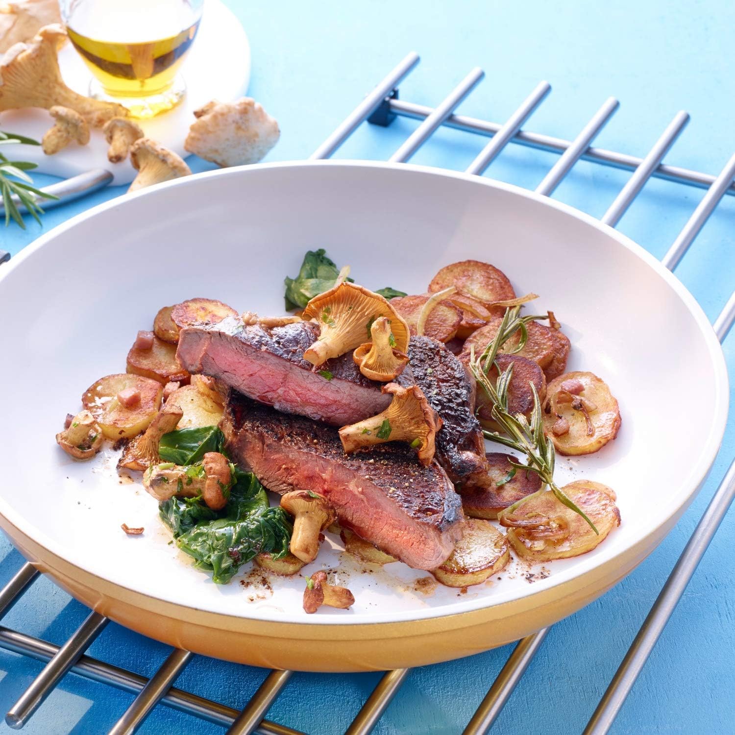La base de acero inoxidable distribuye el calor de forma homogénea, logrando una cocción más rápida y uniforme. Además, las sartenes retienen el calor, por lo que tus comidas siguen cocinándose incluso después de retirarlas del fuego.