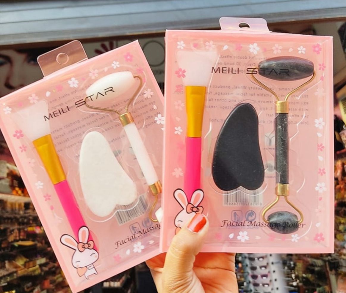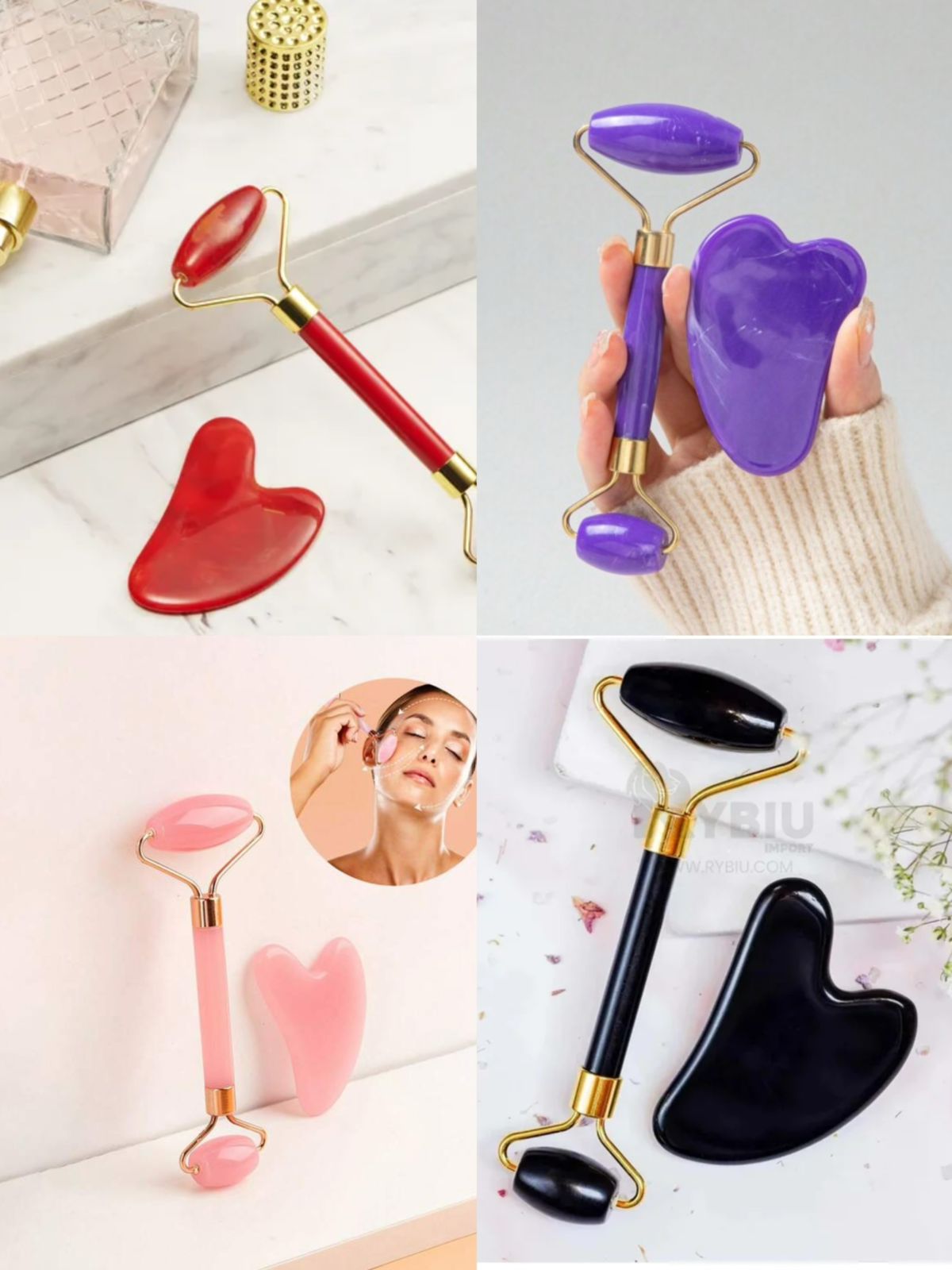 💆♀️ Set Rodillo Facial + Gua Sha@Un dúo perfecto para tu rutina de cuidado facial. El rodillo facial estimula la circulación, ayuda a reducir la hinchazón y mejora la absorción de tus sérums y cremas. La gua sha, utilizada con suaves masajes, favorece la firmeza de la piel, relaja la tensión muscular y define el contorno del rostro.