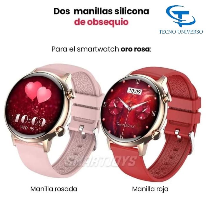 📦 En la caja: Reloj inteligente/ 3 mallas/ cargador/ pulsera de obsequio/ manual.