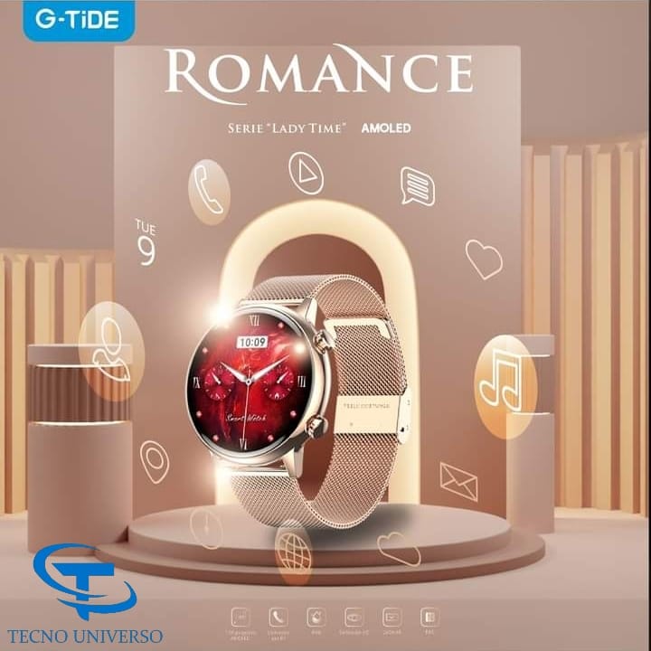 ⌚️Nuevo reloj inteligente G-tide Romance, exclusivo para las mujeres con una pantalla Amoled de 1.1". Bajo una fuerte luz al aire libre el efectos de visualización sigue siendo claro. Elegante y bello en sus detalles de espejo de vidrio zafiro, brillante y transparente.