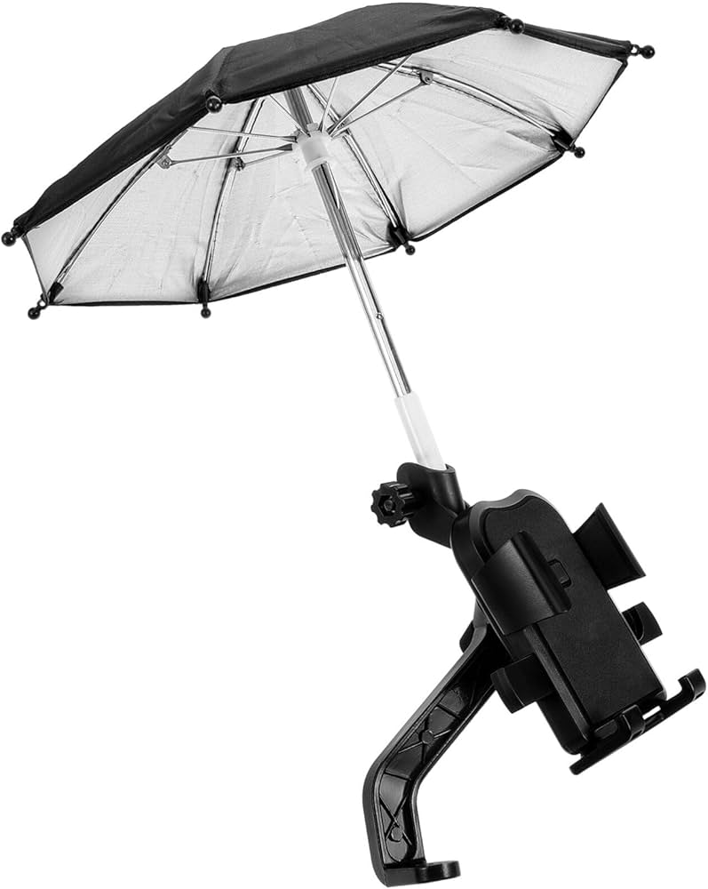 Diseño: Cuenta con un diseño antideslizante para mantener el teléfono seguro y estable durante el movimiento. El paraguas es plegable y compacto, y el soporte a menudo es ajustable y giratorio para una visualización óptima.