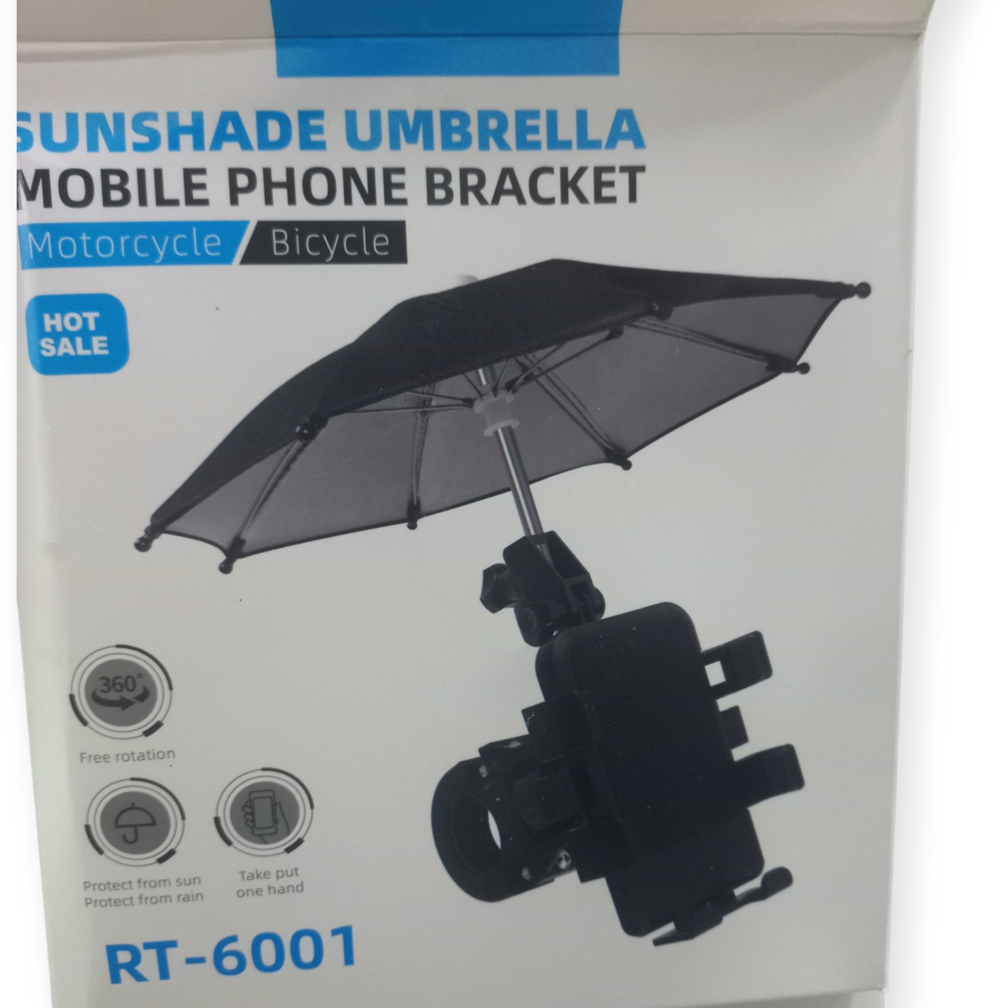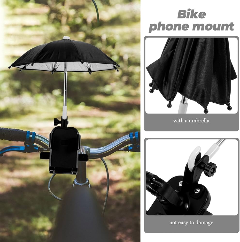 Función dual: Actúa como un soporte de teléfono para el manillar y como un parasol o paraguas para proteger el dispositivo del sol y la lluvia.