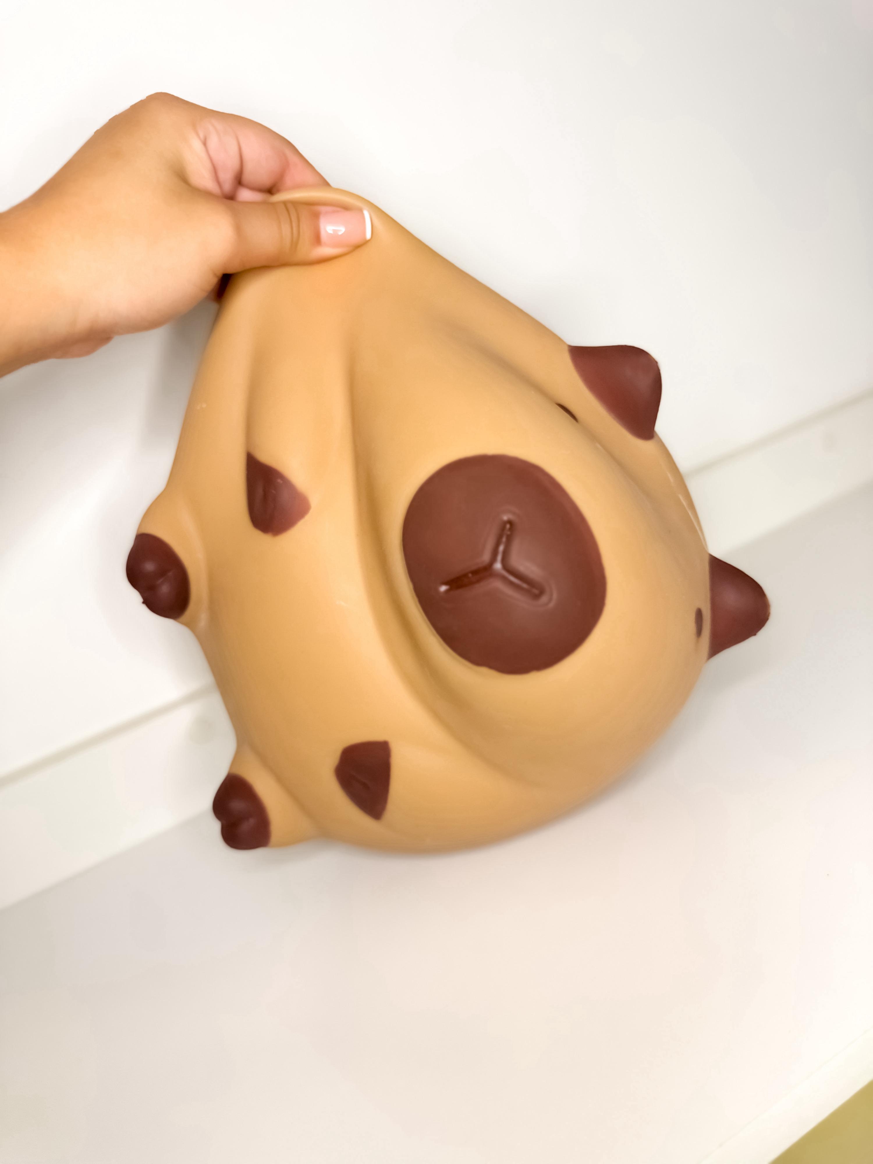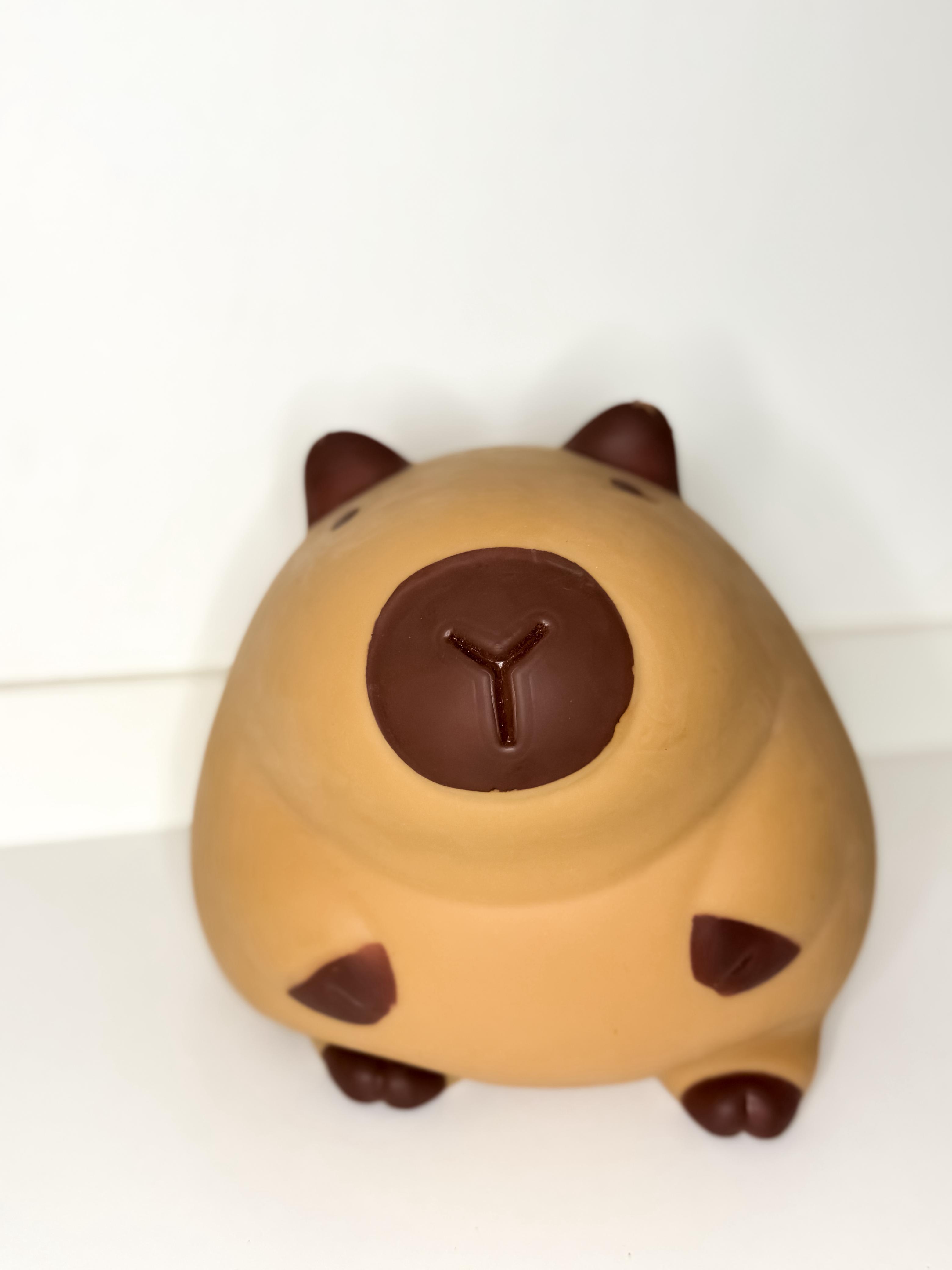 Inspirada en la capibara —el animal más relajado y adorable del reino animal—, esta figura de tamaño mediano es mucho más que un simple juguete. Con una expresión amigable, ojos bordados y forma regordeta que invita a tocar, esta capibara está diseñada para transmitir paz y bienestar desde el primer contacto.