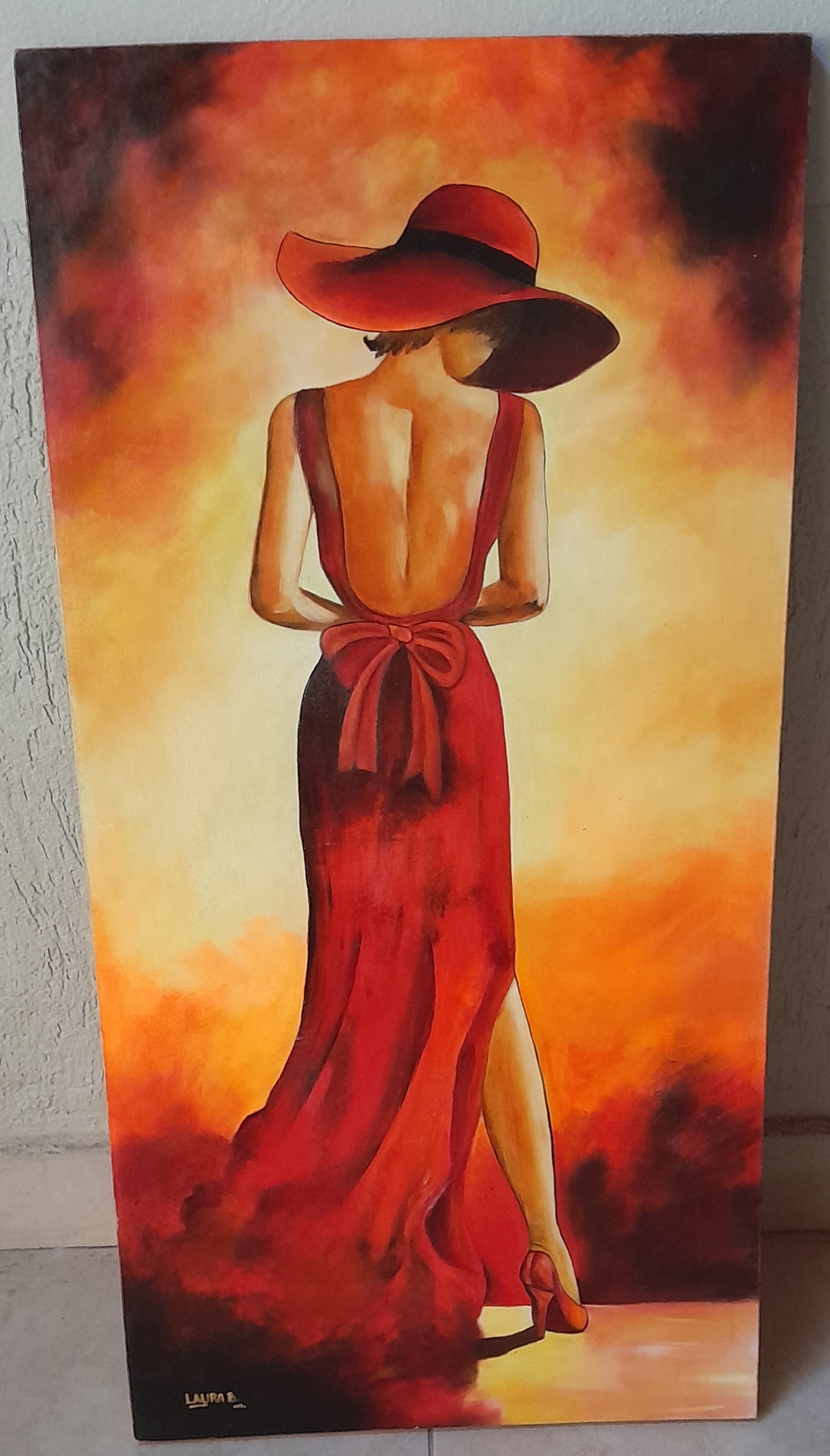 SKU: "La dama de rojo", una cautivadora pintura al óleo. Su belleza y la riqueza de sus detalles la hacen la elección perfecta para embellecer tus paredes y crear un ambiente acogedor y lleno de personalidad.