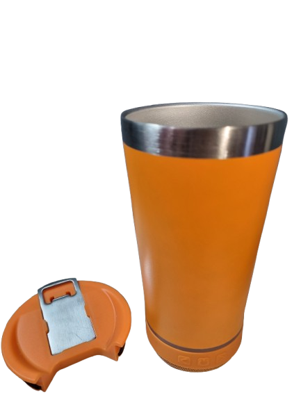 • Material: Acero inoxidable, tapa con abridor y de base el parlante