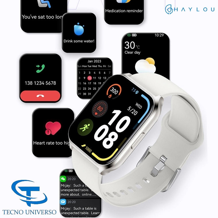 📲El Haylou LS02 Pro también simplifica tu vida diaria. Conectado a tu teléfono a través de Bluetooth, recibirás notificaciones de llamadas, mensajes y aplicaciones directamente en tu muñeca, sin perderte nada importante.